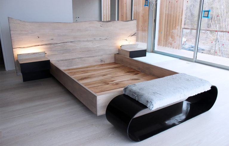 Made with a single full slab of spalted maple, this desk is supported by uniquely angled, bronzed legs, with drawers in between made in Macassar ebony with bronzed steel fronts.